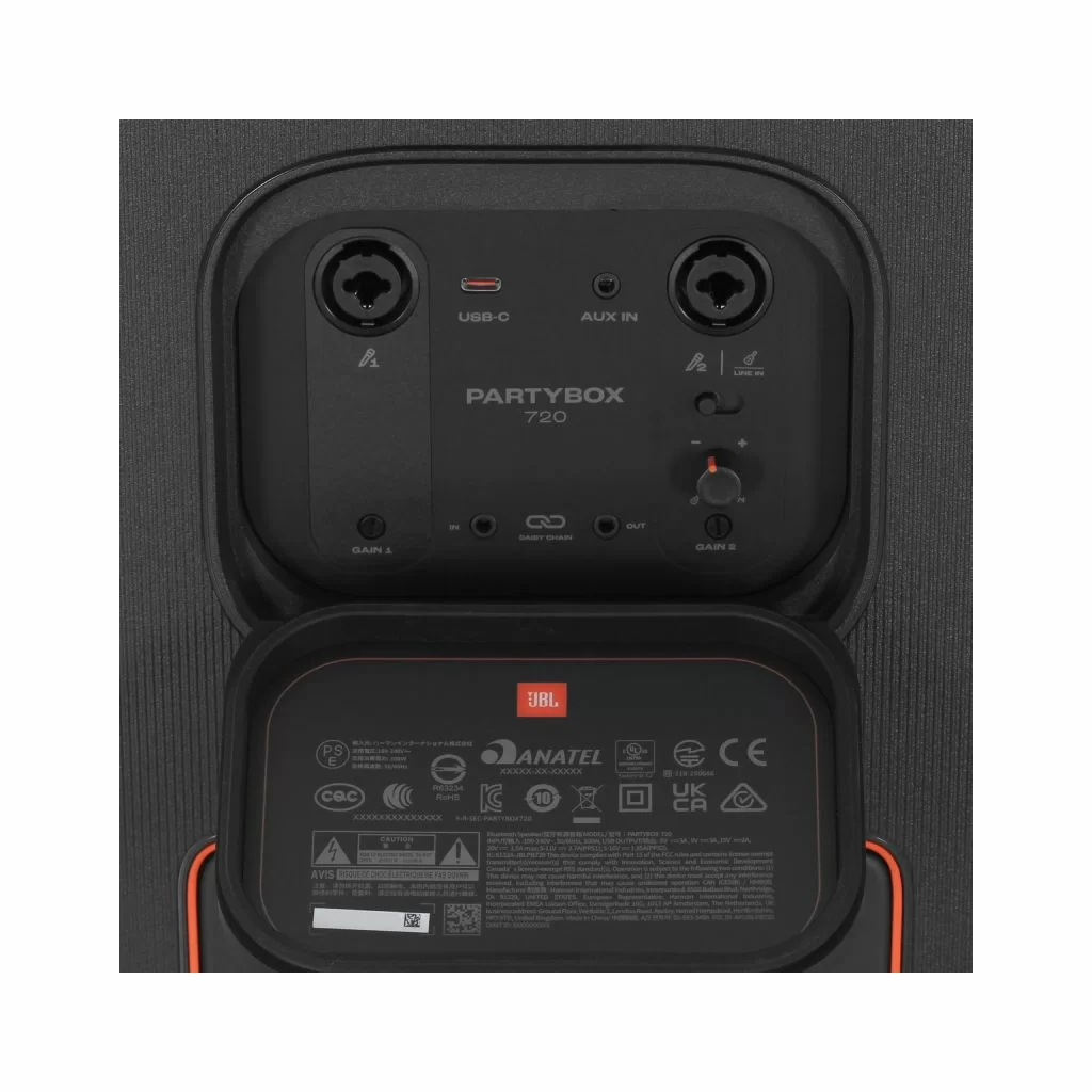 • Масштабирование: Для еще более мощного звука можно объединить две колонки PartyBox 720 в беспроводную стереопару или подключить несколько совместимых колонок через технологию JBL Auracast™.