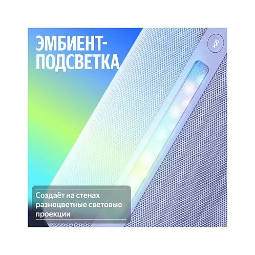 • Эмбиент-подсветка: На задней панели колонки расположена эмбиент-подсветка, способная воспроизводить 16 миллионов цветов, позволяя создавать различные сценарии освещения и атмосферу под настроение.