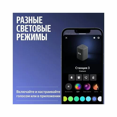 • Круговая LED-подсветка: В верхней части колонки также присутствует круговая LED-подсветка для визуальной обратной связи при взаимодействии с Алисой, срабатывании таймеров и напоминаний.