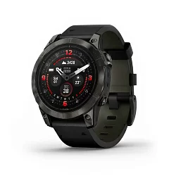 Умные часы Garmin Fenix 7 Pro Sapphire Solar, титановый серый, кожаный ремешок - коричневый