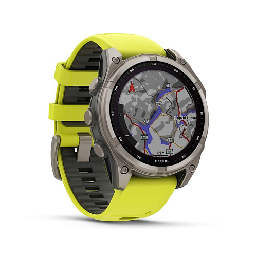 Умные часы Garmin Fenix 8 Sapphire Solar 47 мм, титан, ремешок - силикон, жёлтый/графит