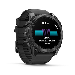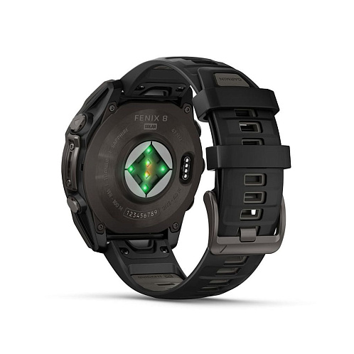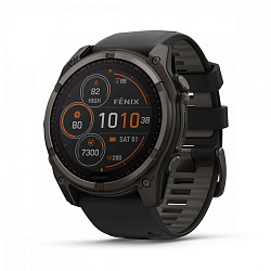 Умные часы Garmin Fenix 8 Sapphire Solar 47 мм, титан с DLC, ремешок - силикон, чёрный/серый