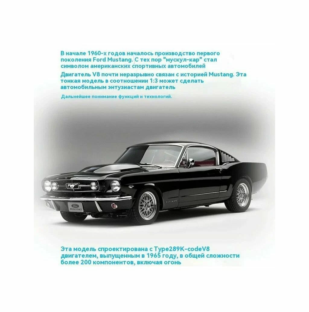 С этим полностью функциональным комплектом вы сможете ощутить функциональность легендарного двигателя V8, который устанавливался на Ford Mustang с 1964 года. У каждого автолюбителя это устройство ассоциируется с производительностью, звуком и легендарной долговечностью. Именно этот двигатель сделал Mustang иконой американского автомобиля.