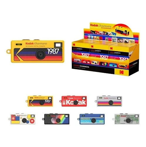 Цифровая камера-брелок Kodak Charmera 1987 — крошечная «игрушечная» цифровая камера от Kodak и производственного партнёра Reto (Гонконг). Её идея — максимум веселья и минимум сложностей: ретро-стиль и вывод 1,6 Мп делают кадры похожими на снимки с цифровых камер конца 1990-х.