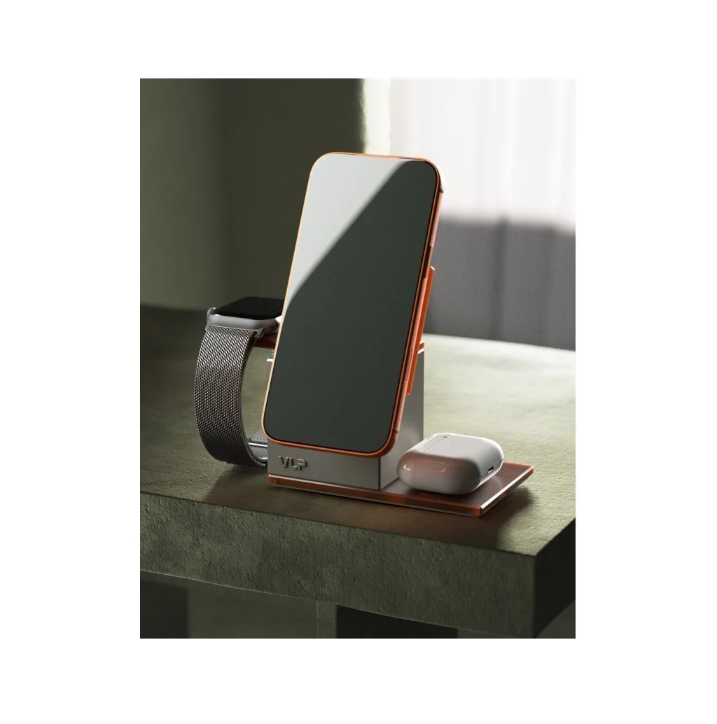Беспроводная зарядная станция идеально совместима с сетевым зарядным устройством VLP NEO 45W (приобретается отдельно).