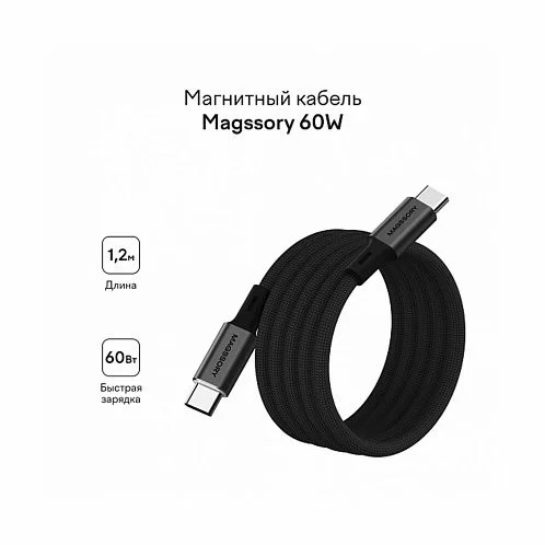 Магнитный кабель Magssory 60W USB-C, 1,2м, черный