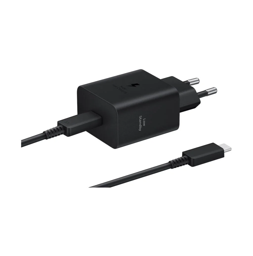 Samsung EP-T4511 — это обновленное зарядное устройство мощностью 45 Вт, созданное для максимально быстрой и безопасной зарядки ваших устройств Galaxy. Главным преимуществом комплектации является длинный 1.8-метровый кабель, который позволяет комфортно пользоваться смартфоном или планшетом, даже если розетка находится далеко от рабочего места или кровати.