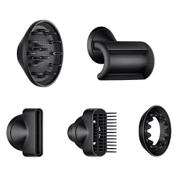 В устройстве предусмотрено три скоростных и три температурных режима. Вес 660 г позволяет брать стайлер в поездки и путешествия. В комплекте поставляется 5 насадок: для создания локонов, придания прикорневого объема и разглаживания волос. Для хранения устройства и аксессуаров предусмотрен чехол. Шнур длиной 2.7 метра обеспечивает комфортное использование, даже если розетка расположена удаленно.