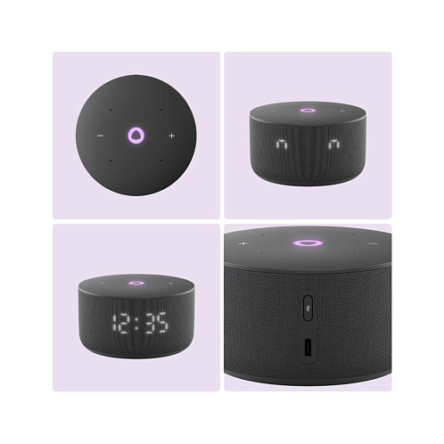 Благодаря более мягкой, цельной и гармоничной форме корпуса Станция Мини 3 отлично смотрится в любом современном интерьере. Цветовая палитра умной колонки тоже обновилась: можно выбрать классические чёрный и серый, а для ценителей акцентов подойдёт пастельный фиолетовый оттенок.