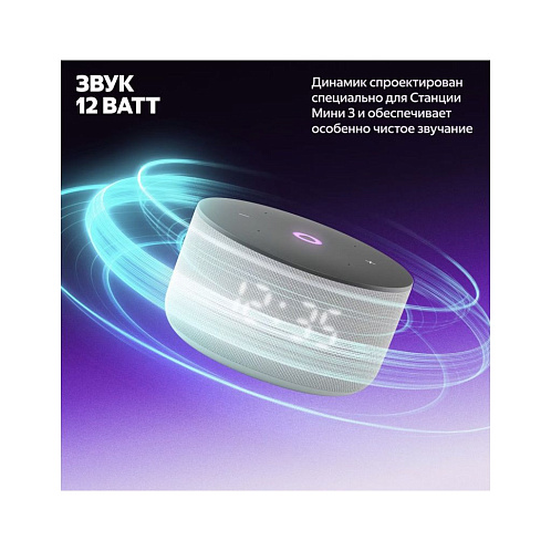 Благодаря более мягкой, цельной и гармоничной форме корпуса Станция Мини 3 отлично смотрится в любом современном интерьере. Цветовая палитра умной колонки тоже обновилась: можно выбрать классические чёрный и серый, а для ценителей акцентов подойдёт пастельный фиолетовый оттенок.
