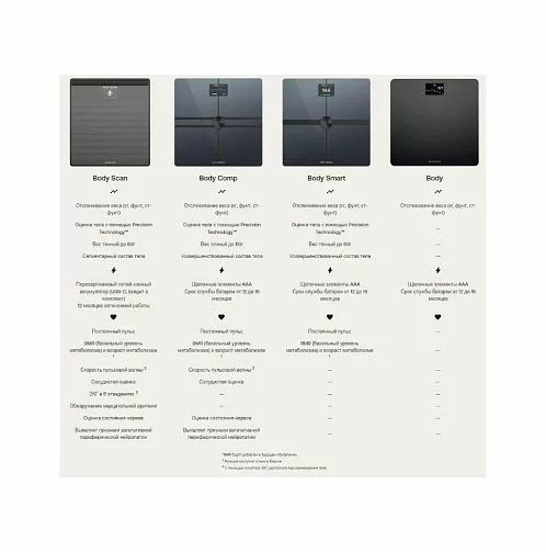 Body Comp обеспечивает наиболее полную оценку, когда-либо предлагавшуюся на интеллектуальных весах Withings, с расширенным составом тела, эксклюзивной информацией о сердечно-сосудистой системе и оценкой состояния нервов, помогающей выявлять признаки периферической невропатии.