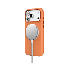 Встроенный MagSafe-совместимый магнит позволяет надёжно зафиксировать зарядное устройство на чехле и заряжать iPhone на максимальной скорости