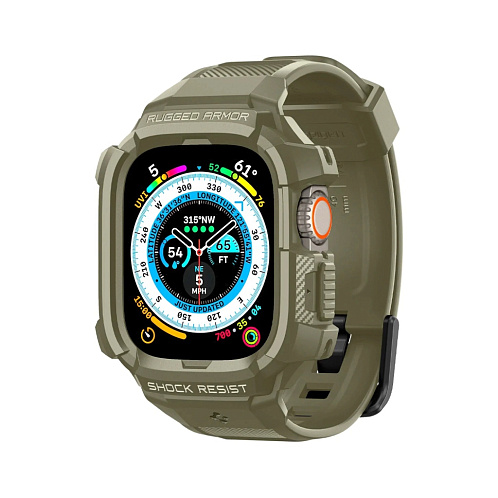 Чехол с ремешком SPIGEN Rugged Armor Pro для Apple Watch Ultra (49 mm), зеленый/хаки