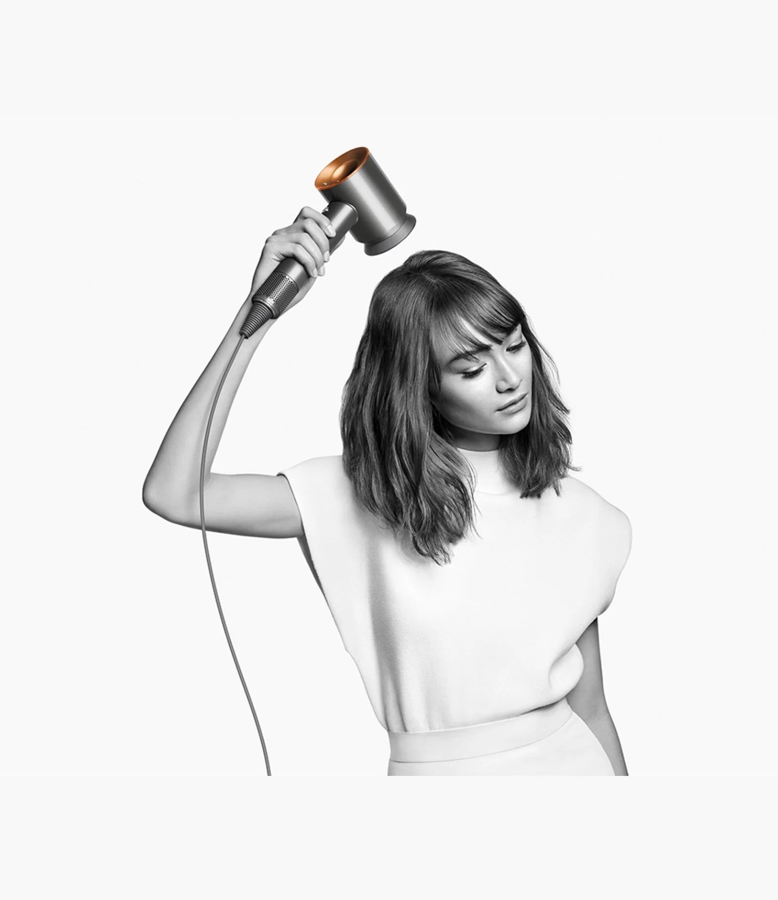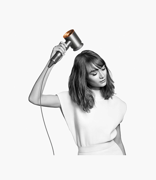 Supersonic – компактный фен, с мощным мотором. Внутри установлен двигатель V9, который вращается со скоростью до 110 тысяч оборотов в минуту. Вместе с технологией Air Multiplier он создает точную высокоскоростную струю воздуха для быстрой и аккуратной укладки.