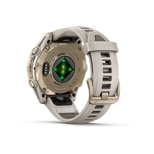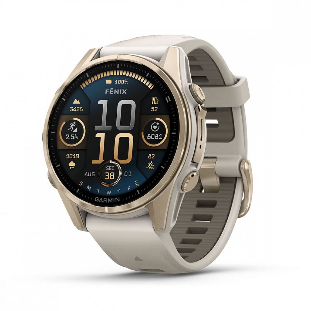 Умные часы Garmin Fenix 8 Sapphire AMOLED 43 мм, золотистый корпус, дымчато-серый ремешок