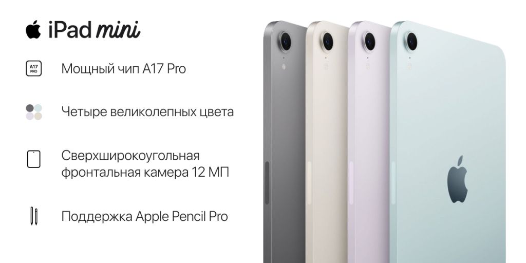 Планшет Apple iPad Mini 7-го поколения новинка 2024 года, которая поддерживает Apple Intelligence - искусственный интеллект на базе ChatGPT.