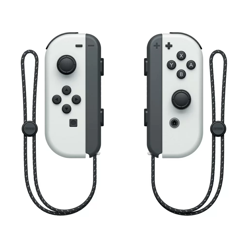 - Комплектация: Nintendo Switch OLED, док-станция, блок питания, кабель HDMI, инструкция, правый Joy-Con, левый Joy-Con, держатель Joy-Con, ремешки на руку для Joy-Con - 2шт