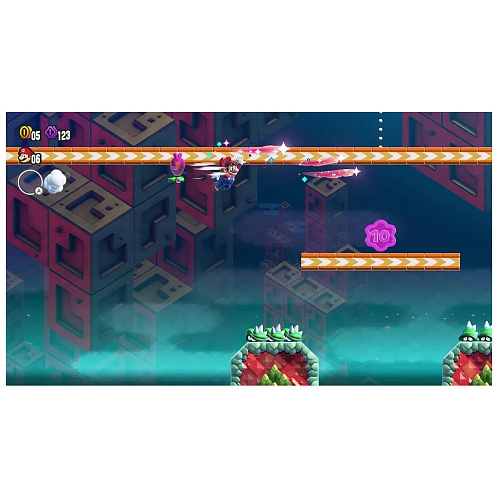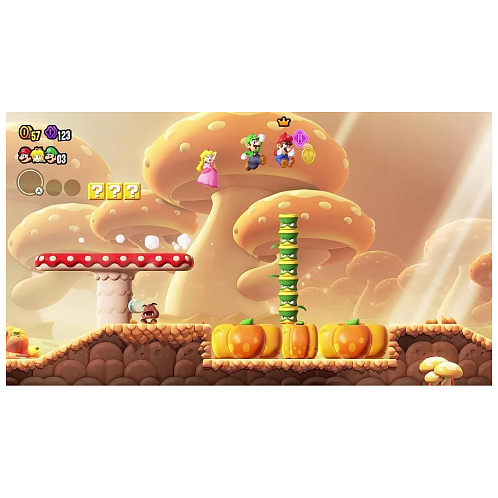 Классический игровой процесс с боковой прокруткой Mario перевернут с ног на голову с добавлением Wonder Flowers! Эти предметы, меняющие правила игры, вызывают захватывающие моменты, которые вы должны увидеть, чтобы поверить. Станьте свидетелями того, как трубы оживают, сеют хаос в виде гигантского шипастого шара, и увидите еще более неожиданные события, называемые чудо-эффектами.