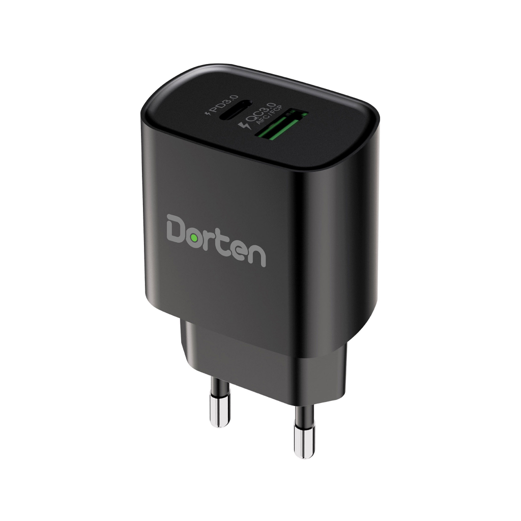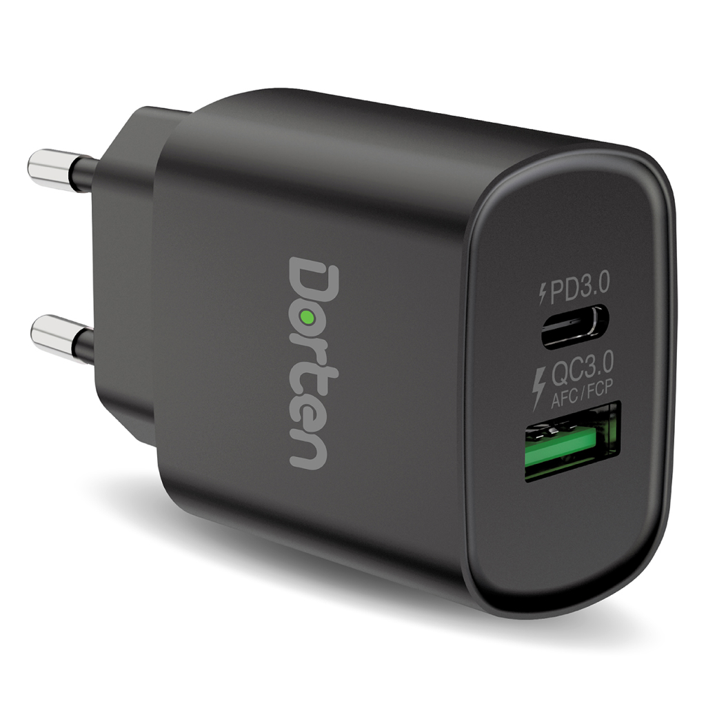 Блок питания Dorten позволяет заряжать устройства с помощью портов USB-C и USB-A. Оба порта соединены с внутренним чипсетом, который автоматически определяет подключенное устройство, чтобы обеспечить нужное количество энергии для оптимальной зарядки. USB-C мощностью 20 Вт с технологией PD3.0 обеспечивает быструю зарядку вашего смартфона Айфон / планшета Apple (до 50% емкости аккумулятора можно зарядить в течение 30 минут), в то время как 18-ваттный порт USB-A, поддерживающий Qualcomm ™ 3.0, FCP ™ и AFC ™ одновременно, так же обеспечивает быструю зарядку вашего смартфона / планшета (в течение 20 минут можно зарядить до 50% емкости аккумулятора).