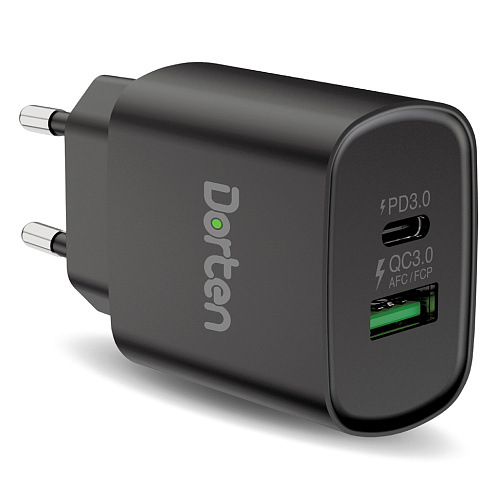Сетевое зарядное устройство Dorten 2-Port USB 20W Wall Quick Charger PD3.0+QC3.0, черный