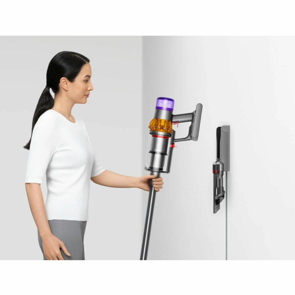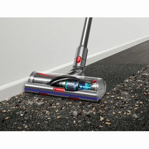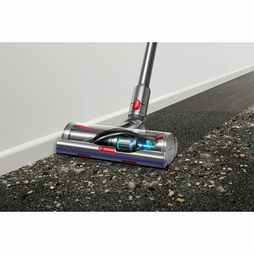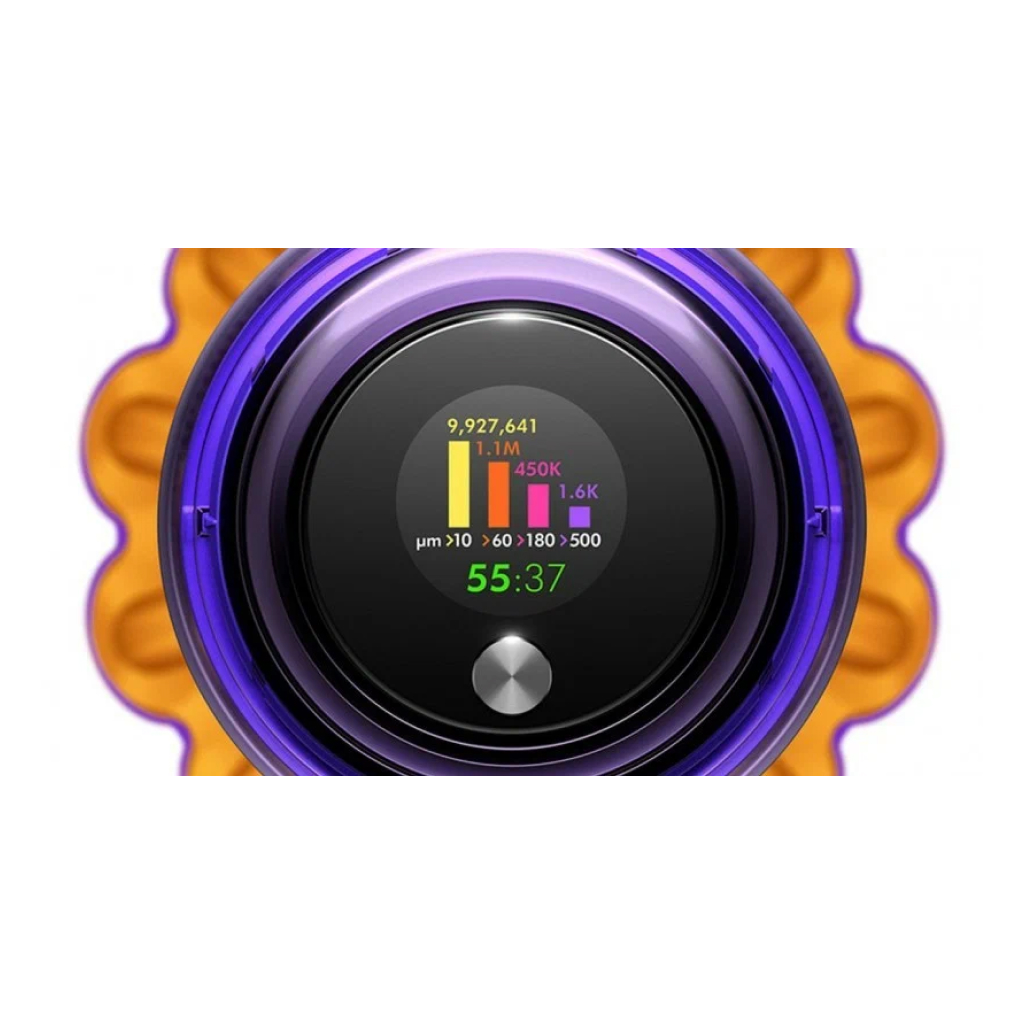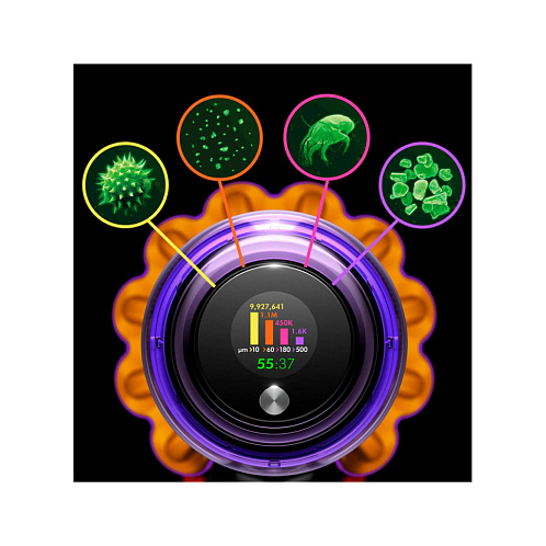 Вертикальный пылесос Dyson V15 Detect оптимален для сухого очищения напольных покрытий дома или квартиры. Модель подсвечивает поверхность, что помогает пользователю тщательнее проводить уборку комнаты. Мощный двигатель обеспечивает высокую производительность устройства при всасывании. Пылесос поддерживает технологию распутывания волос, намотанных на щетку. Благодаря этому достигается эффективная обработка ковров и твердых покрытий в домах, где живут собаки и кошки.Модель оснащена циклонным фильтром, что обеспечивает простоту и удобство применения. Изделие отделяет частицы пыли, шерсть, волосы и мелкий бытовой сор от воздушного потока. Это повышает качество уборки, а также облегчает дыхание членов семьи. Специальная система извлечения мусора позволяет пользователю с легкостью освобождать контейнер. Для поддержания чистоты фильтр и насадку можно мыть в проточной воде. Вертикальный пылесос Dyson V15 Detect оснащен управлением электронного типа с дисплеем.
