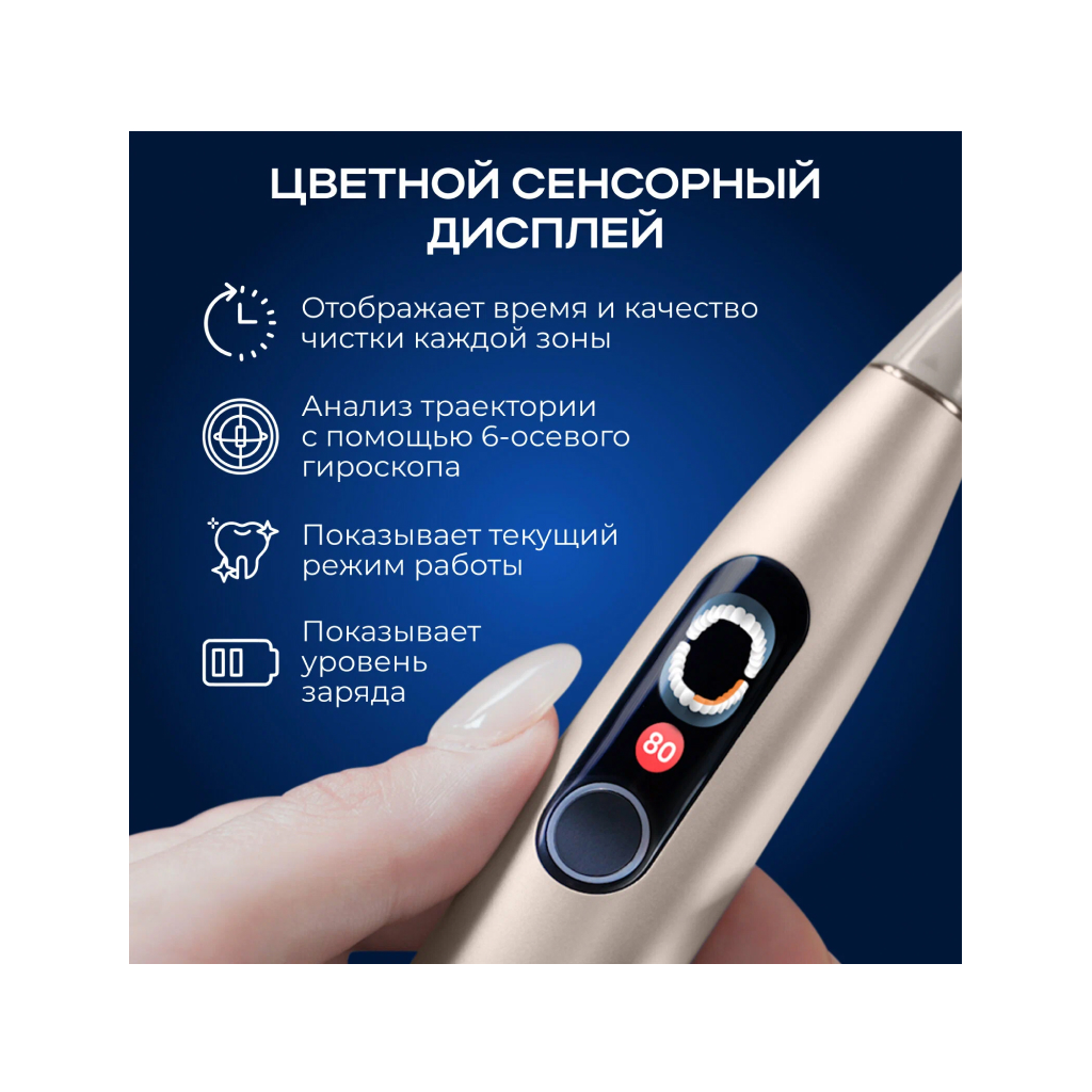 Определяет и контролирует все основные зоны полости рта. Напоминает о необходимости менять зону чистки каждые 30 секунд. Она также предоставляет автоматически сгенерированный план чистки зубов, если ваш показатель чистки зубов ниже 90.
