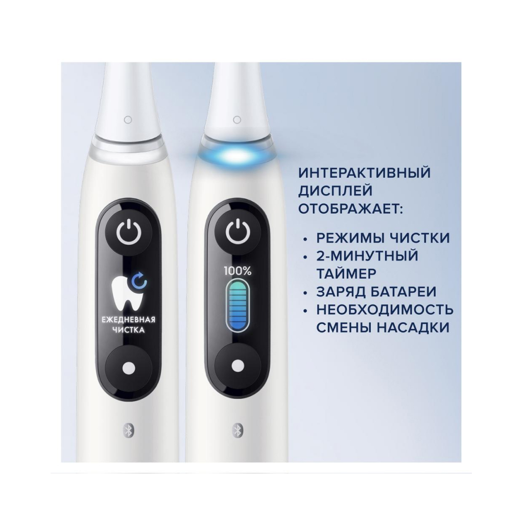 Интерактивный цветной дисплей отображает важную информацию и позволяет выбирать между 7 режимами чистки.